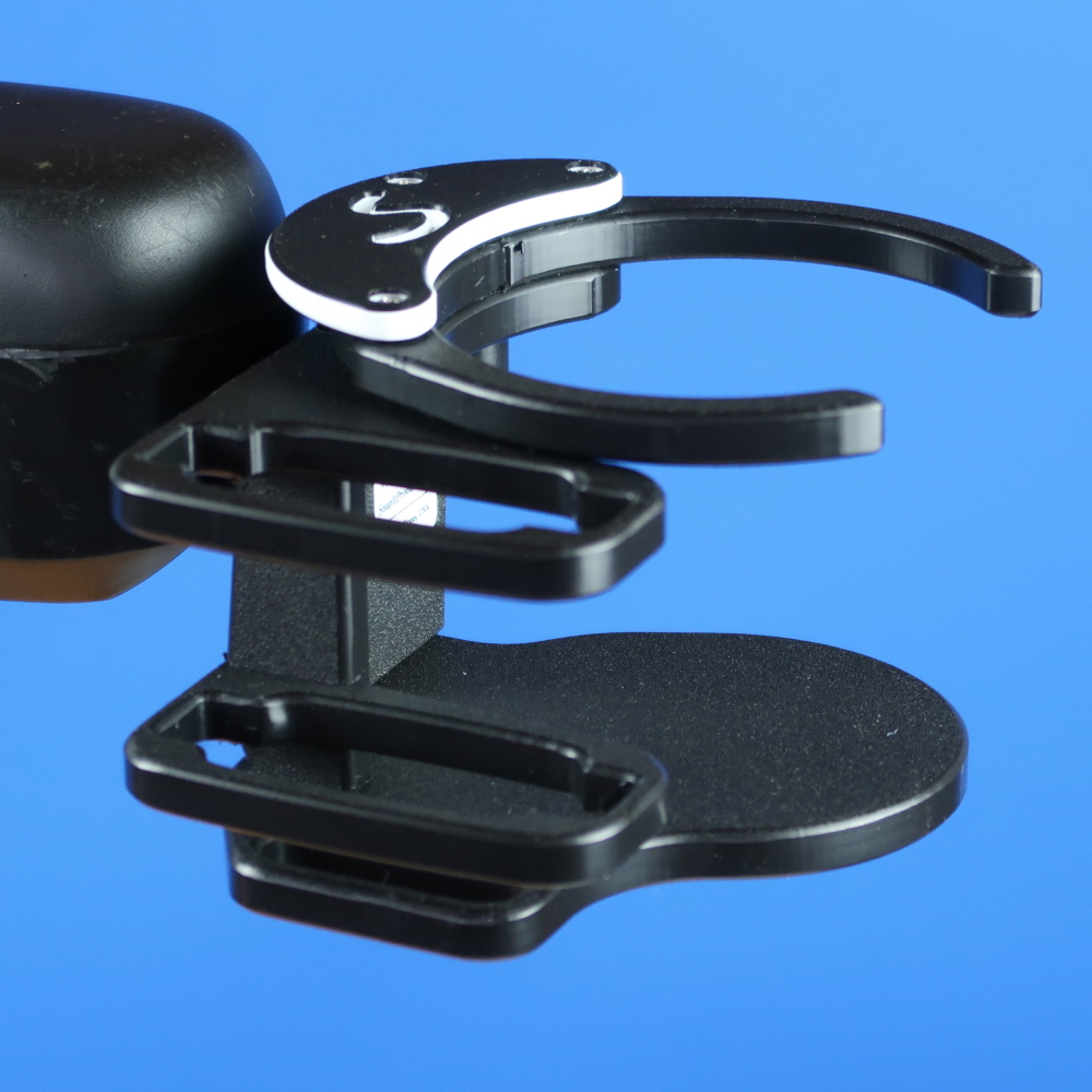 Combo power chair adjustable drink holder and flip/small smart phone holder right hand applications.