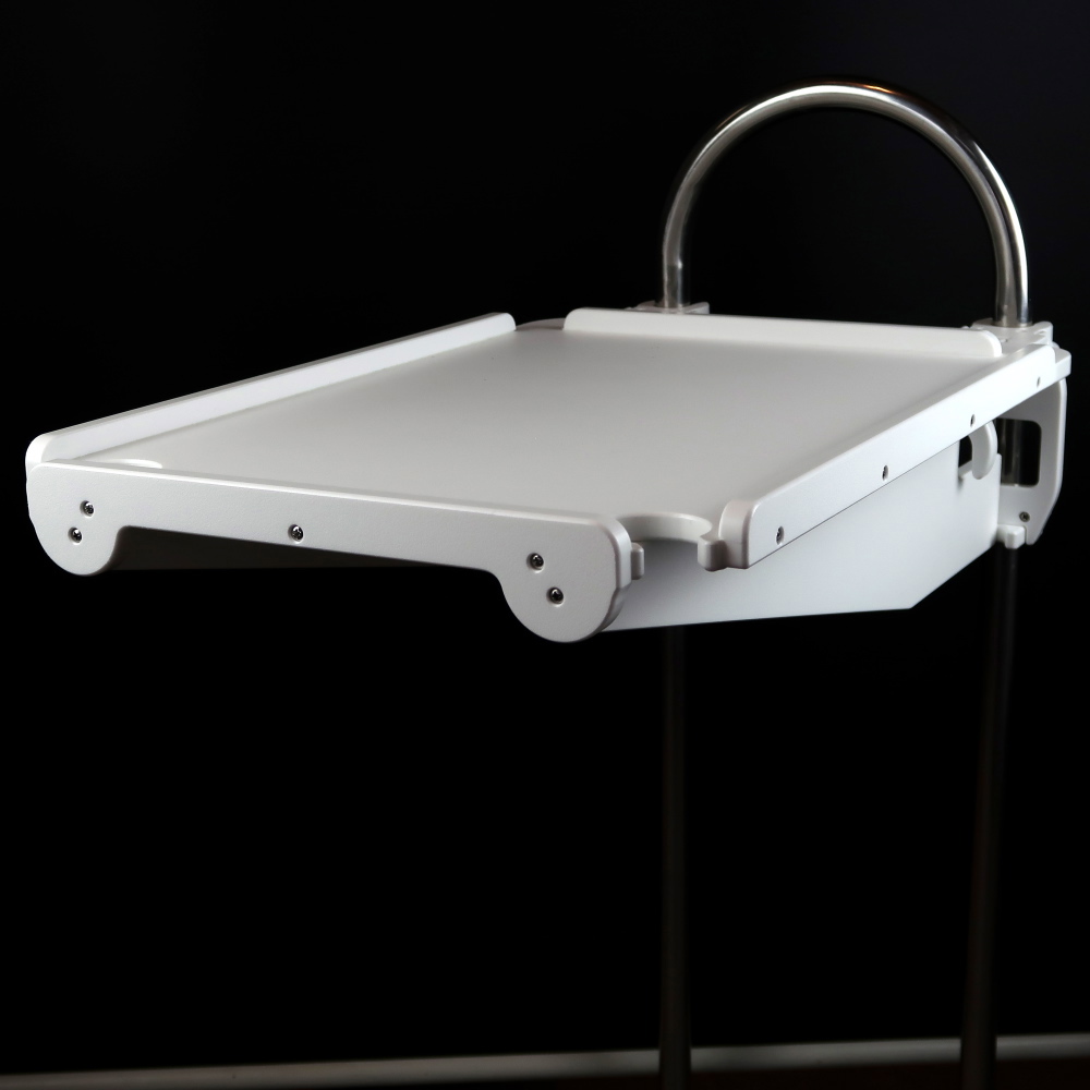 Small pedestal mounted cockpit table. Measures 14.5″ wide by 22″ long. Snaps and clamps onto pedestal guard.