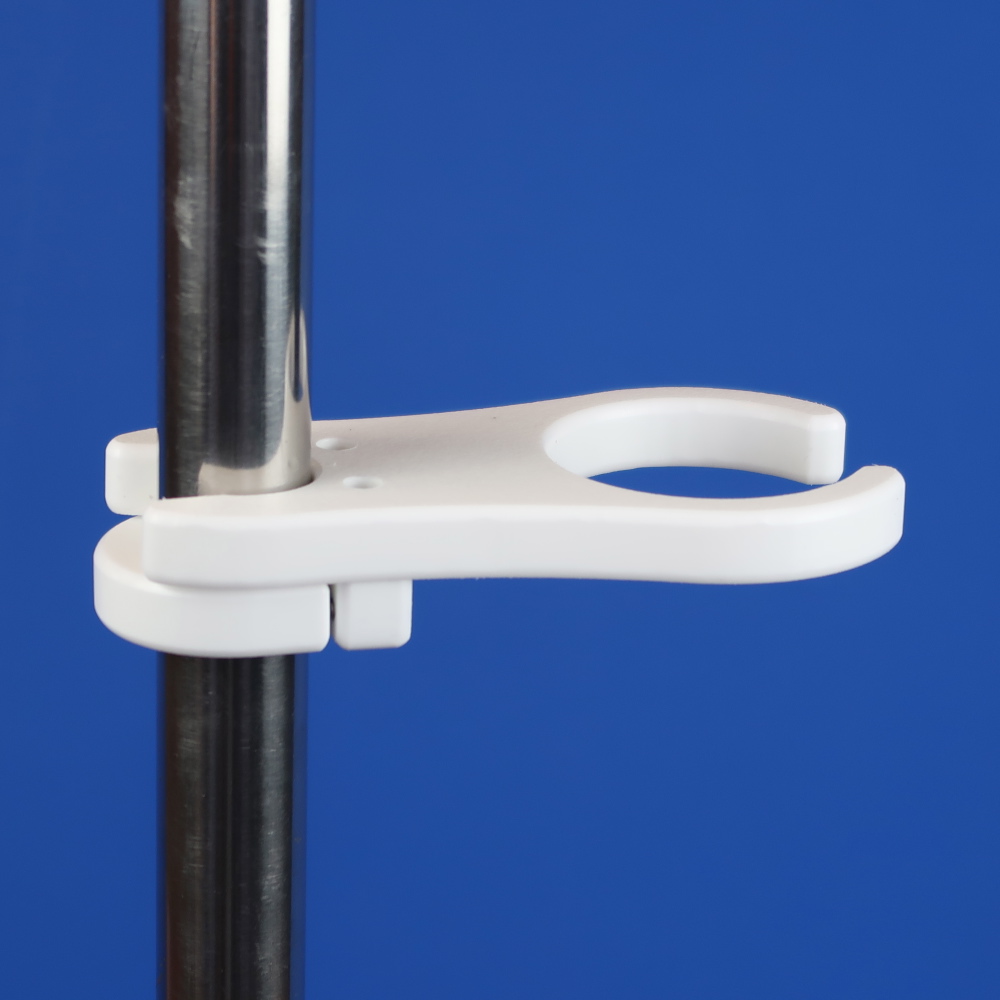 Martini glass holder snaps to vertical stanchion or pedestal guard.