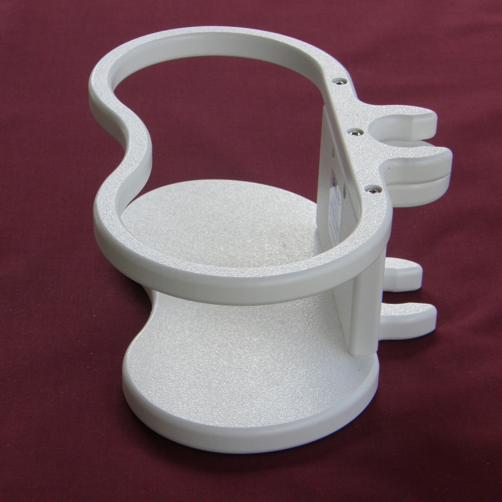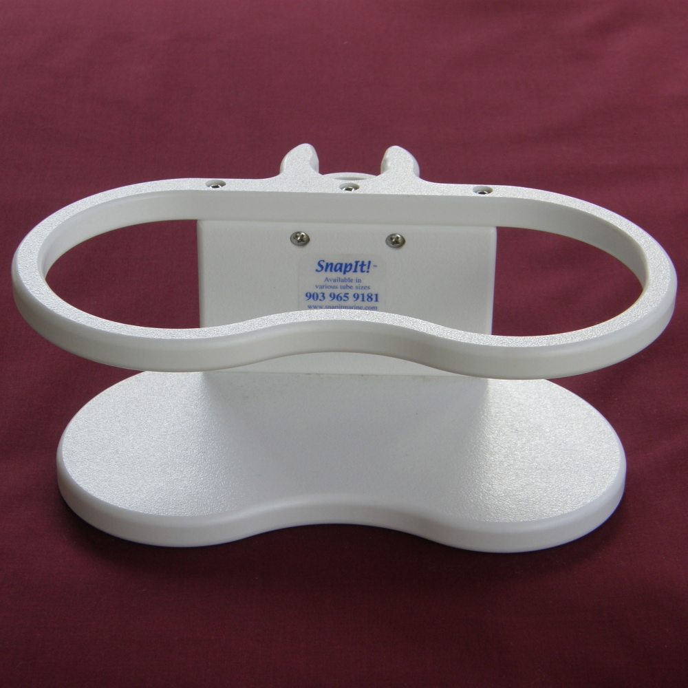 Double marine drink holder snaps to vertical stanchion or pedestal guard. 3.625″ inside diameter accommodates larger drinks