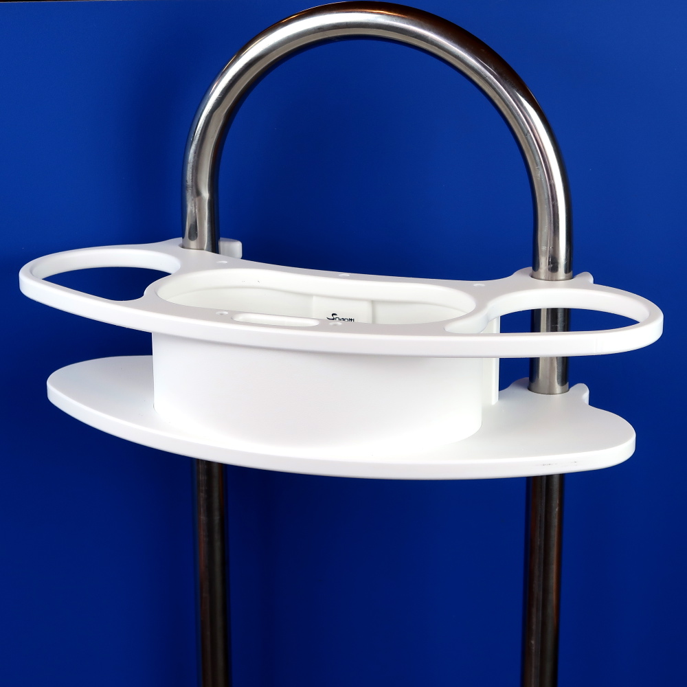 Practical pedestal organizer holds four drinks or two drinks and a pair of binoculars. 3 5/8″ inside diameter