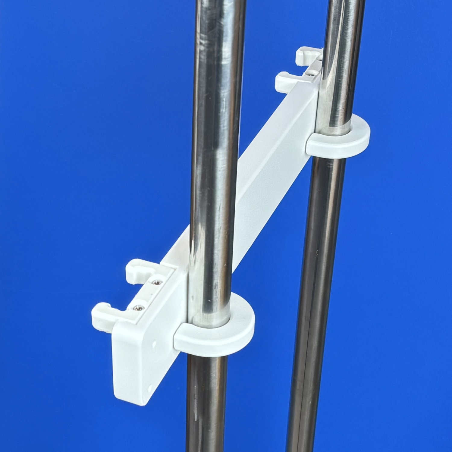 Bracket attaches to pedestal guard with two UniClamps that allow attachment to pedestal guards with 1″, 1 1/8″ or 1 1/4″ diameter tubing
