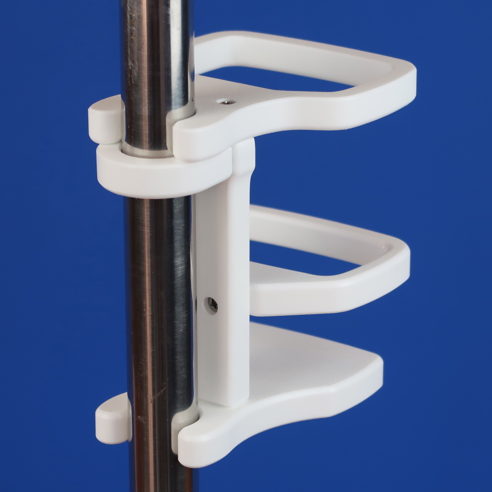 Large marine VHF radio holder snaps to vertical stanchion or pedestal guard. Includes Horseshoe Clamp for optional permanent mount.